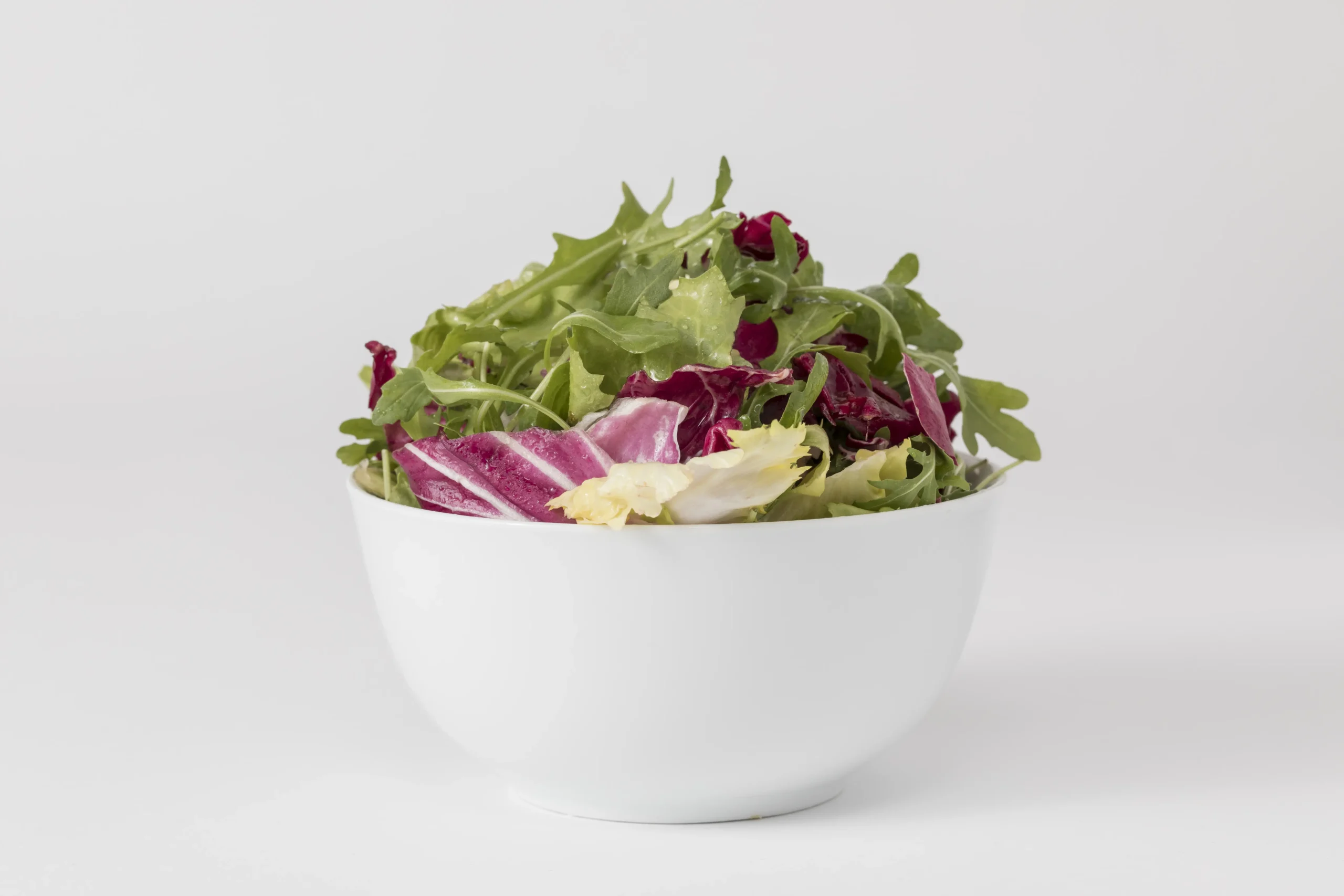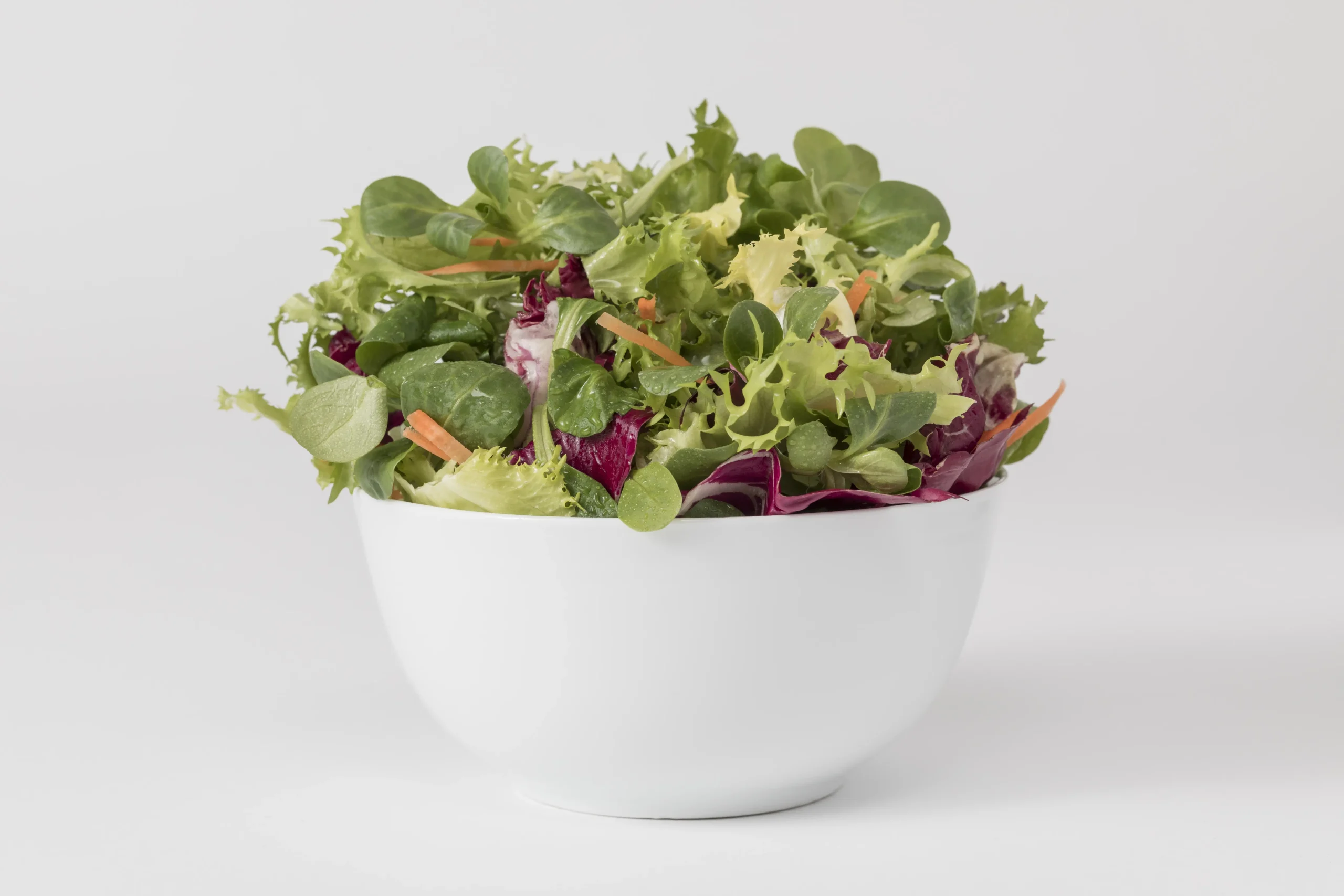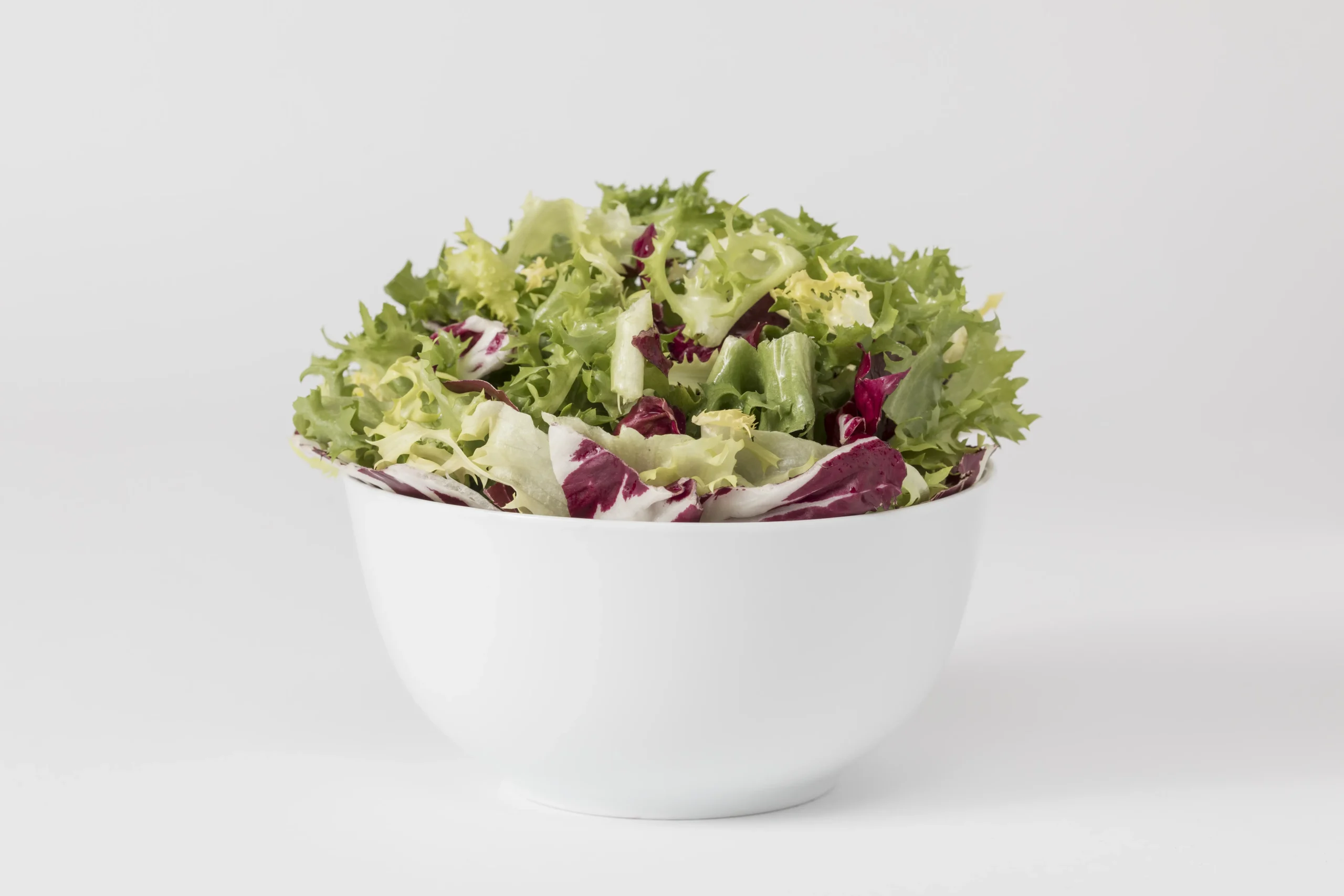 (shelf life: 1+7 days), (transport packaging: cardboard box x 6 pcs), (ingredients: endive, radicchio, frisee, romana, iceberg, carrot